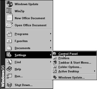1. Click the Start → Settings → Control Panel, as shown in Figure 2-1.