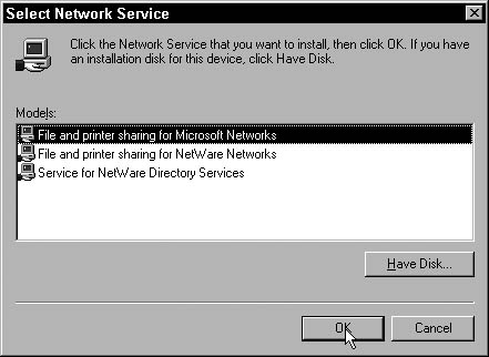 The Select Network Service dialog box appears, as shown in Figure 2-5.