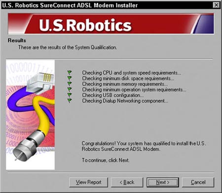 Each of these options has its individual pros and cons — and some options aren’t as widely available. Read on for more information that can help you determine which connection is the right one for you. Telephone modemsA standard telephone modem works by taking computer data (digital data) and translating it into a form that the telephone line can handle (analog data). The maximum speed you can attain with a modem is 56K. In fact, today you can probably only buy 56K modems — don’t even accept a slower modem as a gift. When you use a modem to access the Internet, you dial out to your ISP, and the ISP’s servers provide you with access to the World Wide Web and e-mail. A modem is the least expensive Internet connection and dial-up access is available everywhere. Most new computers come with a 56K modem built in. It’s nothing to get too excited about — a 56K modem is really a slow connection compared to the other possibilities. Also, with a modem, you have to dial out each time you want to use the Internet, which ties up your phone line. If you want a dedicated modem line to avoid missing incoming phone calls, you have the added cost of paying for a second line. ISDNISDN stands for Integrated Services Digital Network. ISDN is basically a type of phone line that uses a digital signal instead of the traditional analog signal. ISDN connections are typically available at 128Kbps (twice that of a standard telephone modem) and make a good alternative to a standard telephone modem if you don’t want to spend a bundle. ISDN (as with the other broadband options discussed in the following sections) is not available everywhere. Check with your local phone company or search the Web to see if ISDN service is available in your area. Often, ISDN is available in urban and semi-urban areas, but not in rural locales. If ISDN is available in your area, you can typically purchase the necessary hardware (called a terminal adapter) from the phone company or another company that offers the ISDN connection. Cable modemsCable modems send data over your cable-television company’s line. Some cable modems are stand-alone devices that can then be connected to your network while others are internal or Universal Serial Bus (USB) devices that must be installed in one computer, which can then share the Internet connection via the Windows Internet connection-sharing feature. One great, good thing about cable modems (and DSL devices, as we discuss in the next section) is that you’re always connected to the Internet — no need to dial out each time you want to use the Internet. (This type of connection is sometimes called an always-on connection.) Plus, cable modems download data really fast — up to 1 million bits per second (1 Mbps). In practice, you won’t likely get 1 Mbps, but the speed will still handily outpace ordinary phone modems and ISDN. Finally, you don’t have to perform any configuration chores to get your cable modem to connect to an ISP. The installation process the cable company performs hooks you up with its ISP automatically. The main downside to cable modems is that they work by connecting you to a network of other cable-modem users. So, as this network of cable-modem users grows (more people use the service in your area), each of you loses some speed because everyone is trying to use a portion of the same network bandwidth. In addition, you will almost certainly have to use your local cable company as both your cable modem service and your ISP. This can be a good thing or a bad thing, depending on the service record of your local cable company. Digital Subscriber Line (DSL and ADSL) devicesA DSL device is like a digital modem (modems are analog) that hooks into your telephone line. DSL uses a separate frequency range (one that can handle digital transmissions) in your telephone wires so that you can continue to use your telephone for voice and fax while simultaneously connecting to the Internet. DSL devices typically connect via an Ethernet cable or a USB connection. If you’ve cabled your network with Ethernet or have a USRobotics wireless network, you can connect the DSL device directly to a USRobotics broadband router (8000A, 8011, 8022, or 9003) and make the Internet available to all the computers on your network. Technically, ADSL can support download speeds of 8 Mbps and upload speeds of 1.5 Mbps. That’s beyond blazing fast. But don’t get excited — in practice, ADSL runs slower than its maximum speed, but still much faster than a telephone modem. DSL devices have several advantages over other devices. They don’t tie up your phone line (you can use your telephone and fax at the same time as DSL). Also, like a cable modem, DSL provides an always-on connection with the Internet, and unlike a cable modem, with DSL, your connection is private — you’re not competing for part of a shared network with other users. Setting up your DSL connection is easy and is performed in one of two ways. Either a technician from your DSL service provider will visit you and install and configure your connection, or you can use a software program such as SureConnect, shown in Figure 3-2.