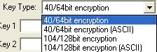 En ce qui concerne l'option Key Type (Type de clé), vous pouvez choisir l'une des options suivantes : 40/64bit encryption (cryptage 40/64 bits), 40/64bit encryption (ASCII) (cryptage 40/64 bits - ASCII), 104/128bit encryption (cryptage 104/128 bits) ou 104/128bit encryption (ASCII) (cryptage 104/128 bits - ASCII) . Les options Key Type qui ne sont pas ASCII sont Hexadécimales.