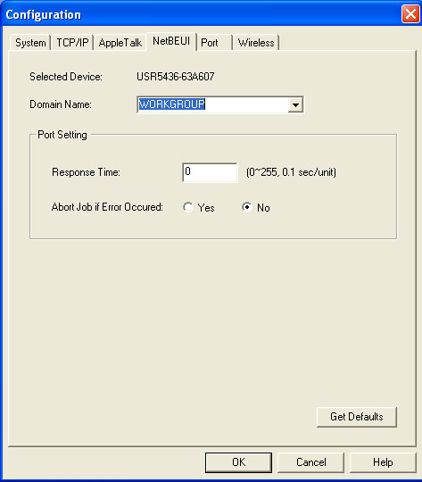 Über die Schaltfläche Get Defaults (Standardeinstellungen wiederherstellen) werden alle Konfigurationseinstellungen auf die werkseitigen Voreinstellungen zurückgesetzt.
