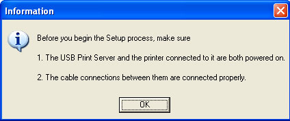 Cliquez sur OK à l'écran Information qui s'affiche. Il sera peut-être nécessaire de réduire l'écran Print Server Utility (Utilitaire du serveur d'impression) pour visionner l'écran Information.