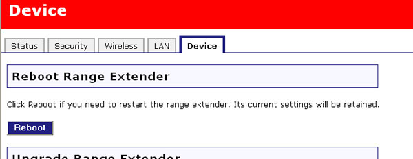 Eğer Wireless MAXg Range Extender doğru biçimde çalışmıyorsa Reboot (Yeniden Başlat) düğmesini tıklatarak Range Extender'ı yeniden başlatabilirsiniz.