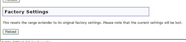 Eğer Range Extender'ınızın tüm kişisel ayarlarını silmek isterseniz ya da Range Extender'ı farklı bir ağa bağlayıp Kurulum Sihirbazı'nı kullanarak yeniden yapılandıracaksanız, bu alana gelin ve varsayılan fabrika ayarlarını geri yüklemek için Reload (Yeniden Yükle) düğmesini tıklatın. Mevcut tüm ayarlar kaybolacaktır. Bu işlem, birtakım ayarları değiştirdiyseniz ve Range Extender doğru şekilde çalışmıyorsa yararlı olabilir.