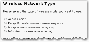 Per il campo Wireless Network Type (Tipo di rete wireless), selezionare Range Extender.