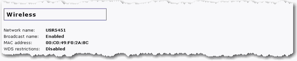 Broadcast name (Trasmissione nome): indica se la trasmissione del nome è Enabled (Attivata) o Disabled (Disattivata). Questa funzione può essere configurata nella pagina Wireless.