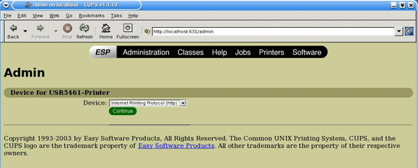 Σημείωση: Εάν ο εκτυπωτής σας δεν εμφανίζεται στον κατάλογο, ανοίξτε το σύνδεσμο Software (Λογισμικό) του μενού σε ένα νέο παράθυρο ή καρτέλα και εκτελέστε αναζήτηση στο χώρο αποθήκευσης του CUPS για να βρείτε τα προγράμματα οδήγησης του εκτυπωτή σας.