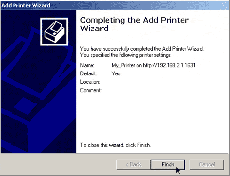 Quando solicitado, seleccione Sim ou Não para definir esta impressora como a impressora predefinida. Se solicitado, pode optar por imprimir uma página de teste.