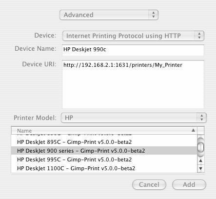 Not: Cihaz URI bilgileri büyük-küçük harf duyarlıdır ve aynen yönelticinin Status (Durum) sayfası Printer location (Yazıcı konumu) bölümünde listelendiği gibi girilmelidir. Eğer yönelticinicin IP adresini değiştirdiyseniz, 192.168.2.1 yerine yeni adresi kullanın.