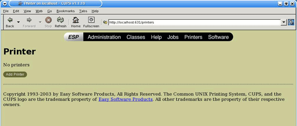 1. Starta en webbläsare. I fältet för plats eller adress skriver du http://localhost:631 och trycker på Enter.