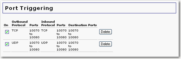 Yönelticiniz, üzerinden İnternet'e erişmesi gereken bir Sony Playstation2™ bağlamak istediğinizde ihtiyacınız olan bir varsayılan Port Tetikleme kuralı ile gelir. Kuralı etkinleştirmek için, kuralın onay kutusunda On (Açık) seçeneğini seçin. Bu sayfada ayrıca kendi PlayStation2™ Port Tetikleme kuralınızı nasıl oluşturacağınız da açıklanmıştır.