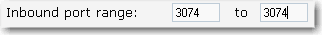 Inbound port range (Giden port aralığı) için her iki kutuya da 3074 yazın.