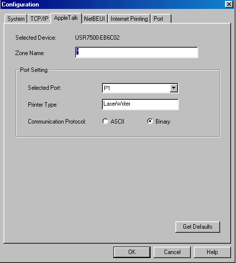 The next tab is AppleTalk, which is only applicable to Macintosh