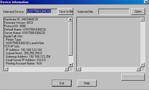of the selected USB Print Server's CONFIG file to your computer. Click