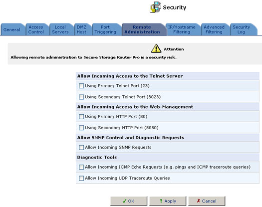 - È possibile utilizzare la schermata Remote Access per consentire la configurazione remota di USR8200 Firewall/VPN/NAS da qualsiasi computer con accesso a Internet.