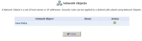2. Fare clic su New Entry (Nuova voce) per visualizzare la schermata Network Objects.