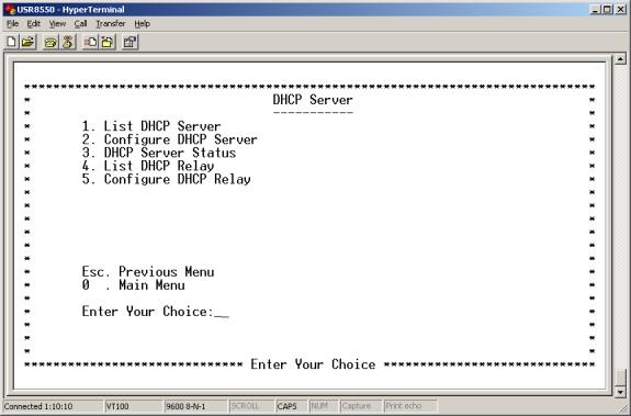 Geben Sie im Menü PPPoE Relay (PPPoE-Relais) 4 ein. Daraufhin erscheint das Menü PPPoE Relay Status. In diesem Menü können Sie den PPPoE-Relais-Status auf Enabled (aktiviert) und Disabled (deaktiviert) festlegen.