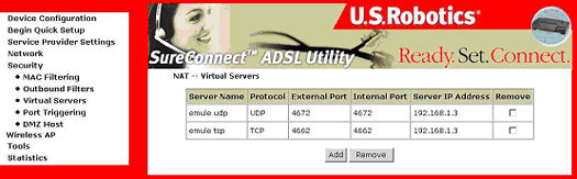 - Internal server IP Address (Adresse IP du serveur interne) : (dans ce cas, l'adresse IP de l'ordinateur du client Emule).