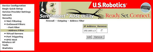 - Andare all'opzione Address Filter (Filtro indirizzo) nel menu Security - Outbound Filter (Sicurezza - Filtro in uscita).