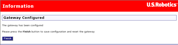 Sie haben den Quick Setup-Prozess fast abgeschlossen. Klicken Sie auf Finish (Fertig stellen), um Ihre Konfiguration auf dem Gateway zu speichern.