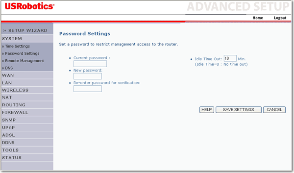 Gebruik deze pagina om het wachtwoord van de Wireless ADSL2+ Router te wijzigen. Wachtwoorden moeten drie tot twaalf alfanumerieke tekens lang zijn en zijn hoofdlettergevoelig.