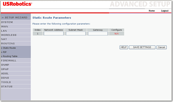 1. Per aggiungere un nuovo percorso statico, fare clic su Add (Aggiungi).
