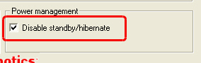 Controleer of de optie Disable standby/hibernate (Stand-by/slaapstand uitschakelen) is geselecteerd. Als uw computer op de stand-by of de slaapstand overschakelt, kan de USB Telephone Adapter de gesprekken niet verwerken.
