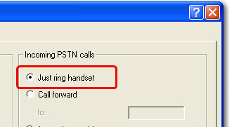Selecteer Just ring handset (Telefoon laten overgaan) onder Incoming PSTN calls (Inkomende PSTN-gesprekken) om gespreksverwerking voor inkomende PSTN-gesprekken uit te schakelen.